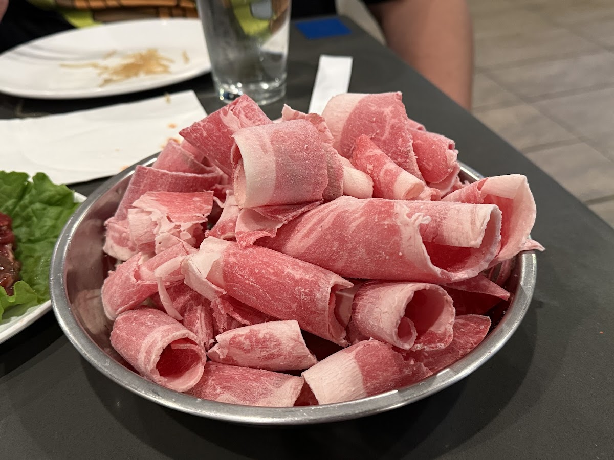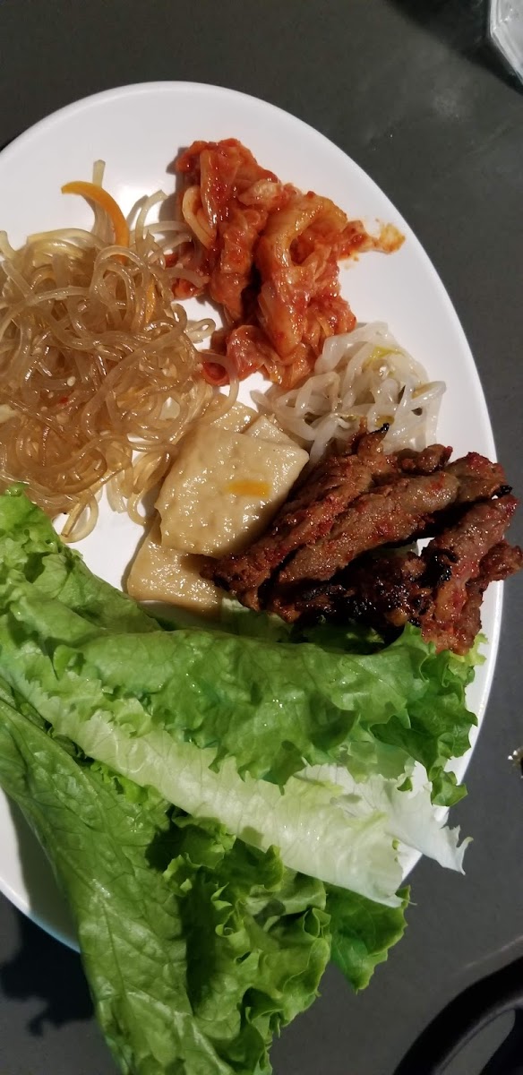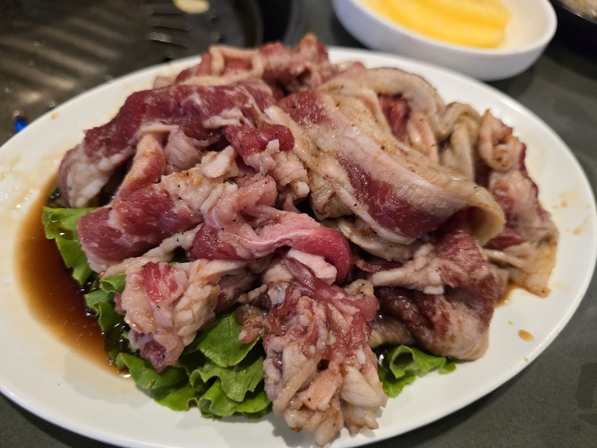 The meat was quite good and the price was pretty good. I thought it was all well flavored except the pork belly, the lunch menu selection was about half of the dinner menu but we didn't really miss they things that weren't included in the lunch menu. The marinated beef bulgogi was really really good. The service was really good but there was only one server for 11 tables and Korean BBQ needs a ton of service to bring more meat, sides, water, and grills. She should get a raise for doing several people's jobs. We felt bad for her and they really need to get another lunch server.